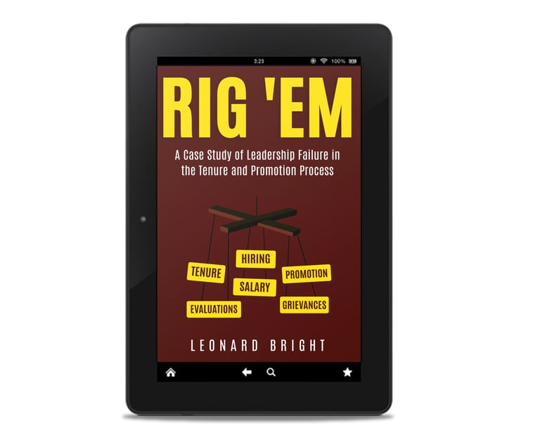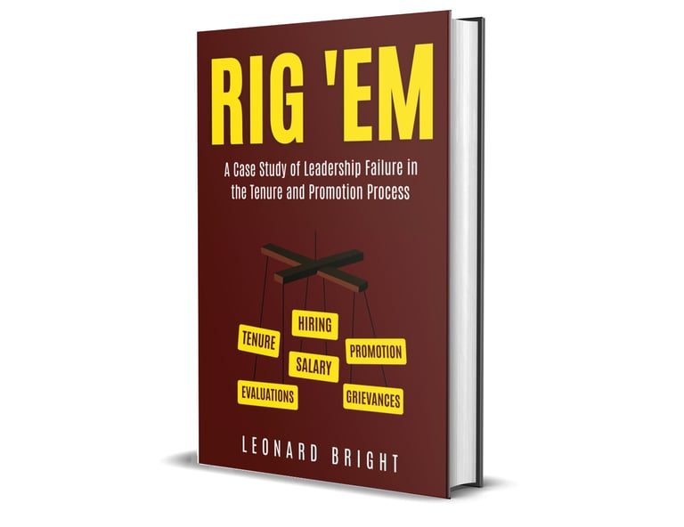 RIG ‘EM gives you practical, immediately applicable insights into the university tenure and promotion process. Knowledge you can start using today. This illustrative case study presents a meticulously documented account by Dr. Leonard Bright, who courageously confronted the challenges he faced during the tenure and promotion process at Texas A&M University. Step behind the scenes to witness the games often played, sometimes against unsuspecting professors, again and again.